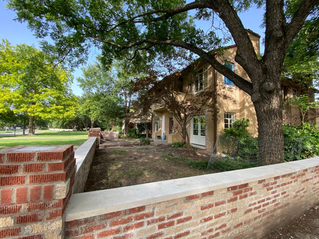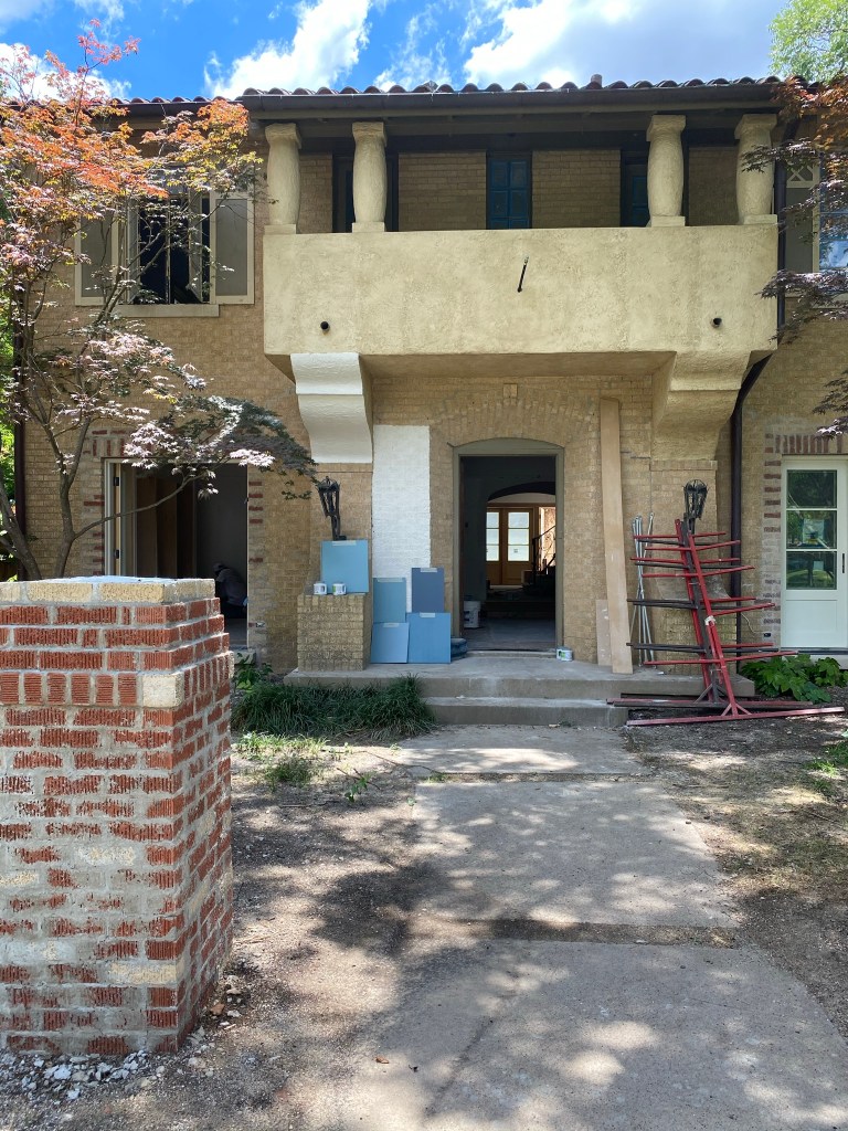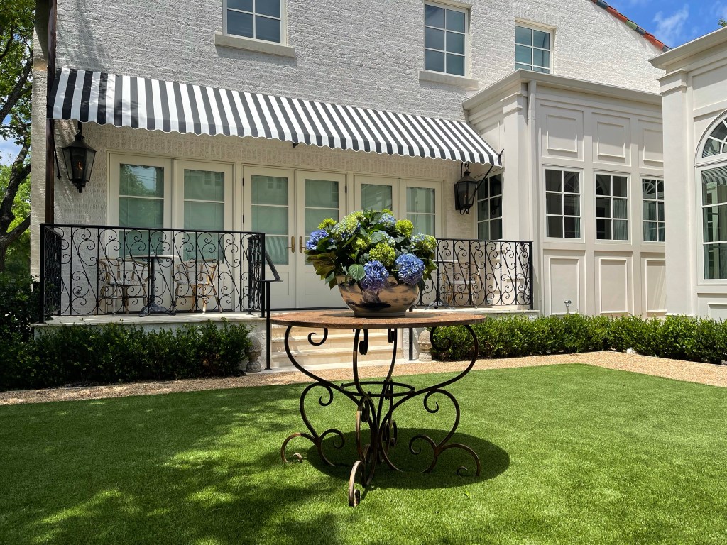 - The awning covered patio off the family room was designed by Maestri Studio and Dan Houchard (From the Ground Up) and added during the renovation. It features the same french limestone used elsewhere in the home and the ironwork was fabricated locally to match the original Potter’s ironwork stair railings. The french doors were added to allow access to the new patio and a new bank of windows were added to increase natural light.