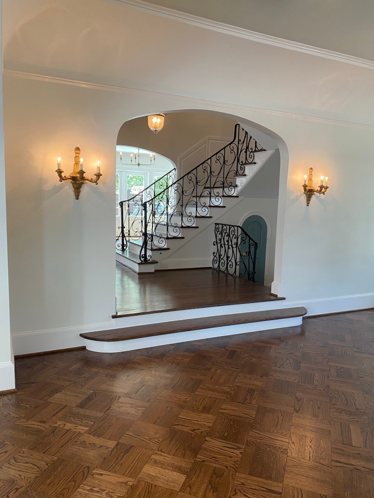- The Potter’s ironwork stair railings and balusters are original. A small section of stair railing was replicated from the original by a local iron fabricator after the archway leading to the family room was enlarged.