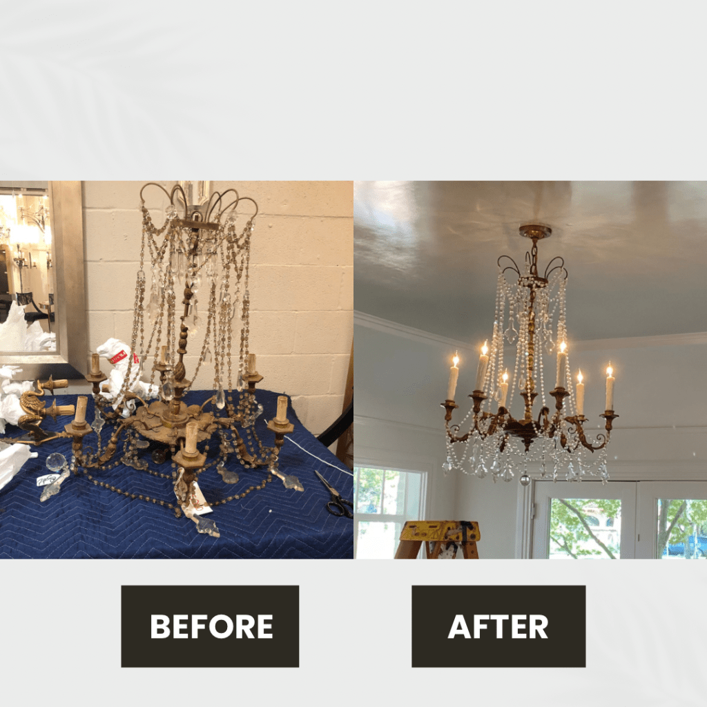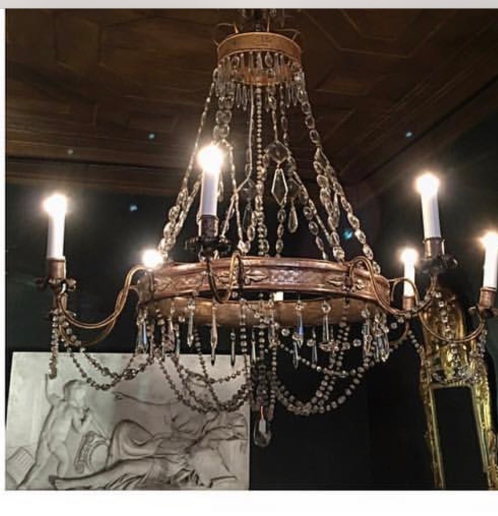 - The antique French Empire light fixture and sconces and the Louis XVI Gilded Mirror were sourced at the Les Puces de Saint-Ouen and shipped back to the US in a crate during the renovation. The fixtures were re-wired locally by Crow Chandelier.