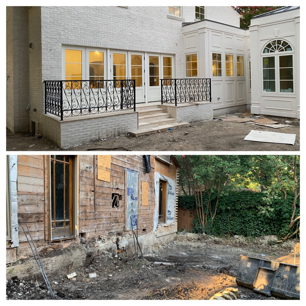 The “after” of the family room patio. The iron railing replicates the original Potter’s ironwork stair railing. To the right of the patio is the new kitchen wall bump-out.