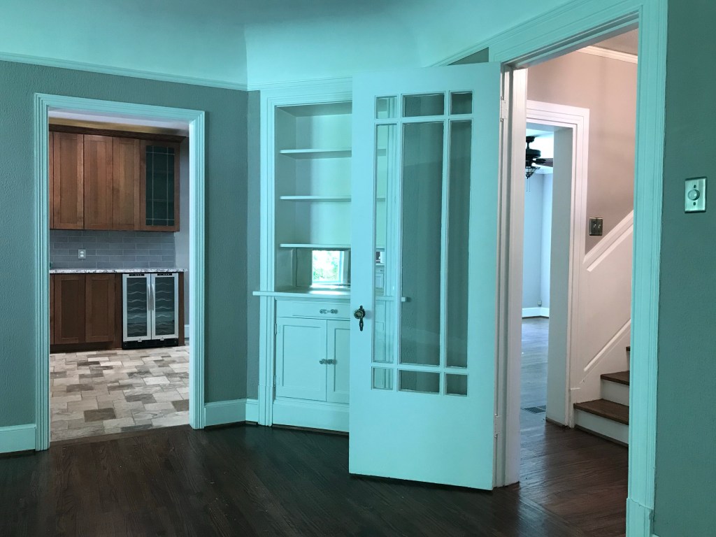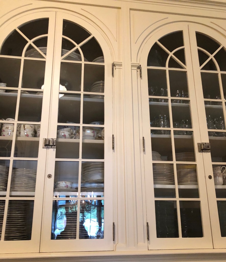 - The built-ins are original and arched glass doors were added during the renovation. The arched cabinet doors were inspired by cabinets in the Aldredge house on Swiss Avenue.