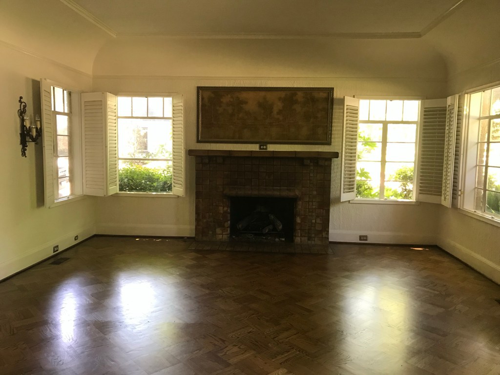 - The windows on each side of the fireplace are the original steel casement windows with leaded glass.