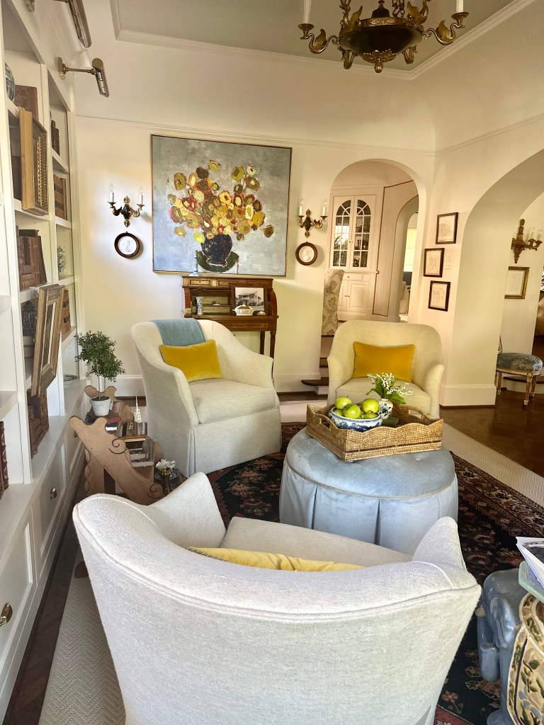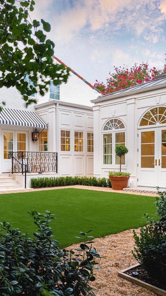 As a Francophile, I wanted to incorporate Provence-inspired elements throughout the renovation giving our Spanish Revival home a French twist. To achieve the French-inspired design updates, architect Eddie Maestri (Maestri Studio), incorporated a new gas lantern over the front door, new french doors that allowed for an indoor/outdoor feel with the front courtyard, striped awnings, Provence-style shutters, a black and white tiled entry, back courtyard and a L’Orangerie connecting the original house to the back house. Finding the balance between creating a new design aesthetic while also honoring the original look and feel of the home was not always easy, but we are pleased with the end result and feel blessed to live and own a historic home with 93 years (and counting) of history.