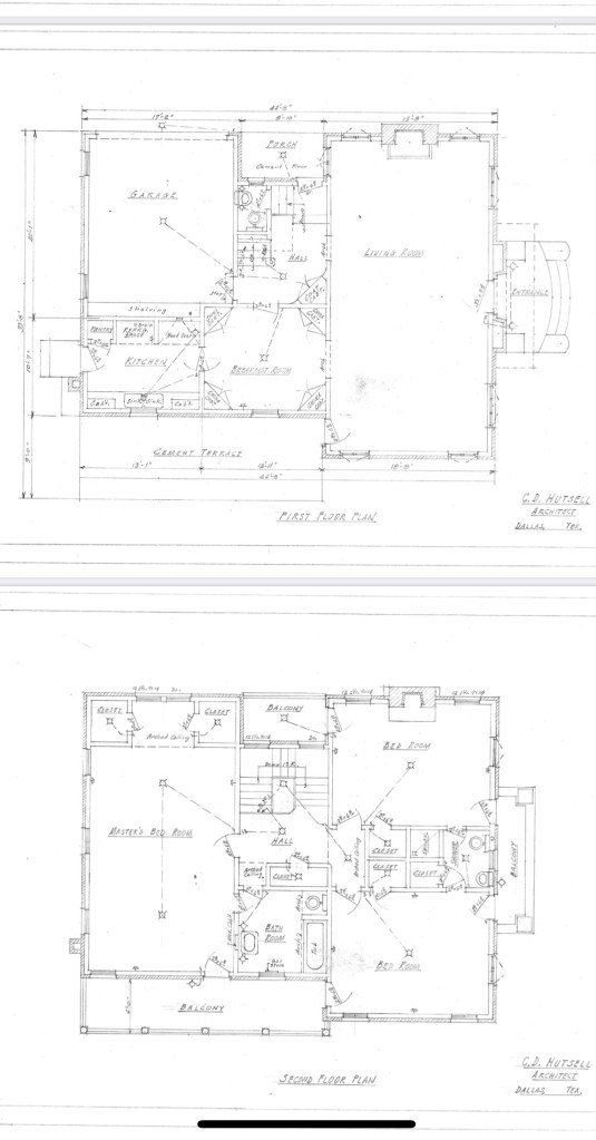 CD Hutsell (<~ click for more info) was a self-taught architect/builder and he designed 50 homes in Lakewood between 1926-1941. Most of his homes were designed in the Spanish Revival style and were inspired by his travels to Southern California to visit the silent movie star,Tom Mix’s, estate. CD Hutsell was a carpenter by trade and employed the same small group of expert craftsman for most of his projects. Because of his commitment to quality construction and attention to detail many of his homes have stood the test of time and are still intact today. Most “Hutsell’s” are on Lakewood Blvd but there are others scattered throughout Lakewood, in other areas of Dallas, and one (possibly another), is still standing proud in Longview, TX. We purchased our Hutsell in 2018 and began an extensive remodel with formal construction completion at the end of 2020, although the “to-do” list is constantly evolving and likely never to be officially completed.