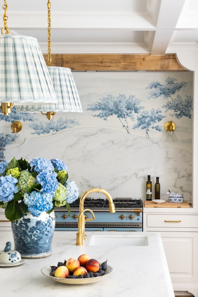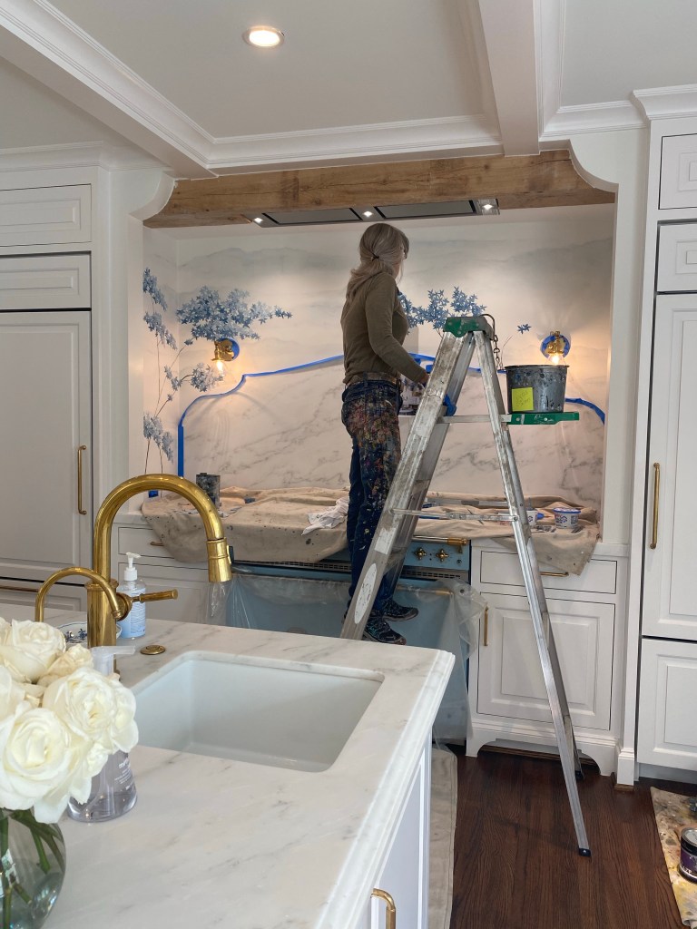 - The mural over the range was designed by Pickering House Interiors and hand-painted by a local artist.