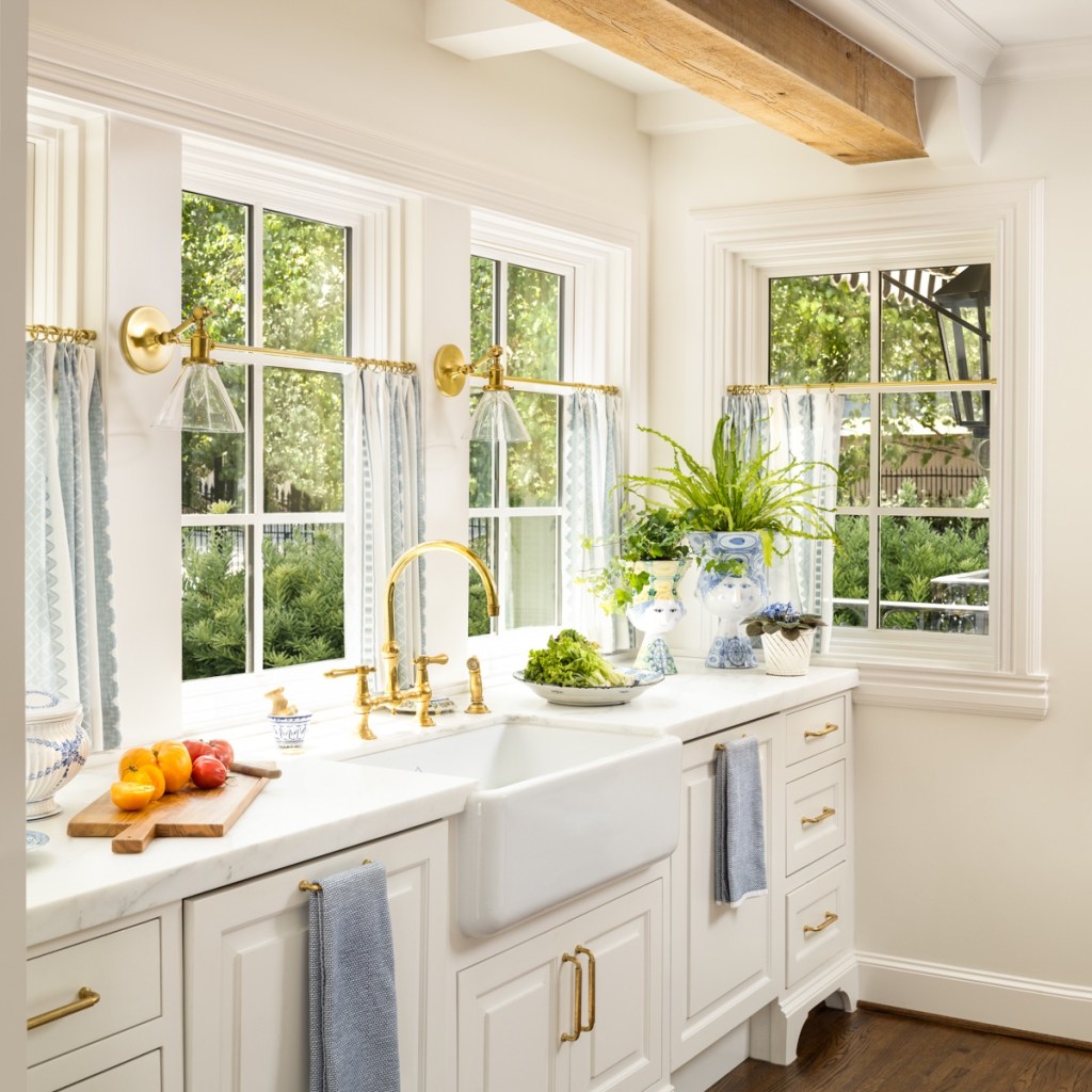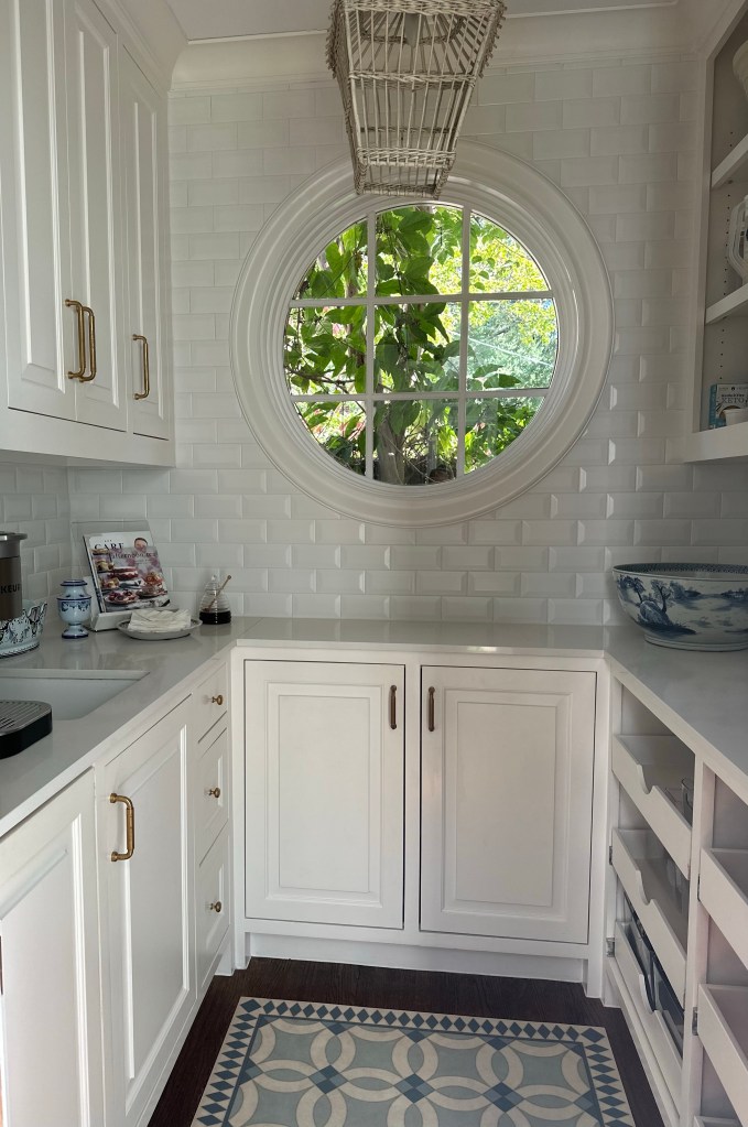 - The kitchen layout was reimagined by Maestri Studio, with the original kitchen wall (where the farmhouse sink is now), bumped out to allow for more space and a new bank of windows was added to increase natural light.