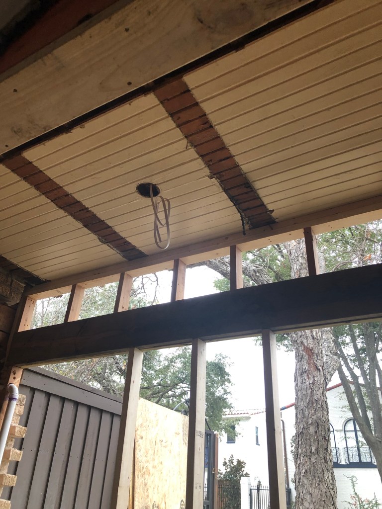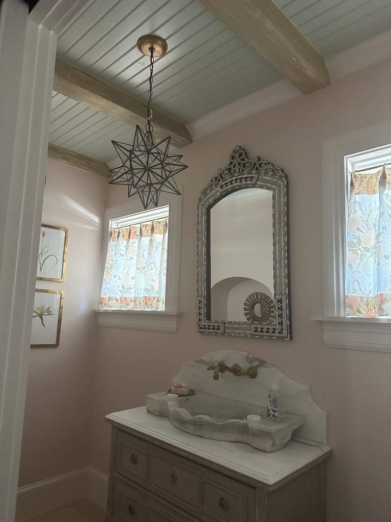 - The beams on the powder bath ceiling were the original porch beams and restored during the renovation by Barringer Homes.