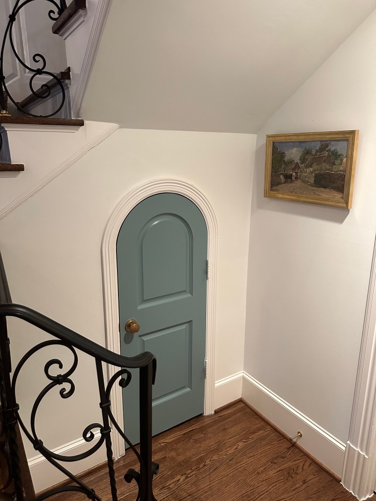 - The original powder bath was under the stairs, which is now a small storage closet.