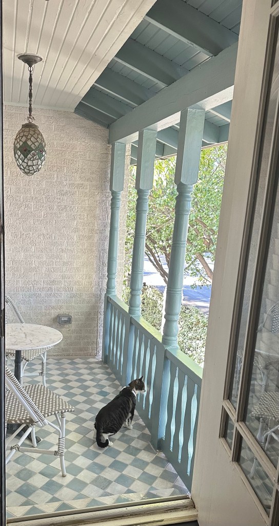 Much effort went into selecting the perfect shade of blue for the new gate, shutters and original wood balusters on the side balcony. We settled on a custom shade of delft blue.
