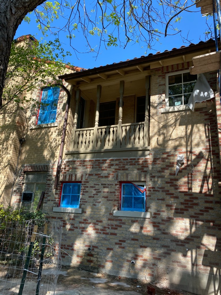 - Both balconies are original. The stained glass fixture on the side balcony is original.