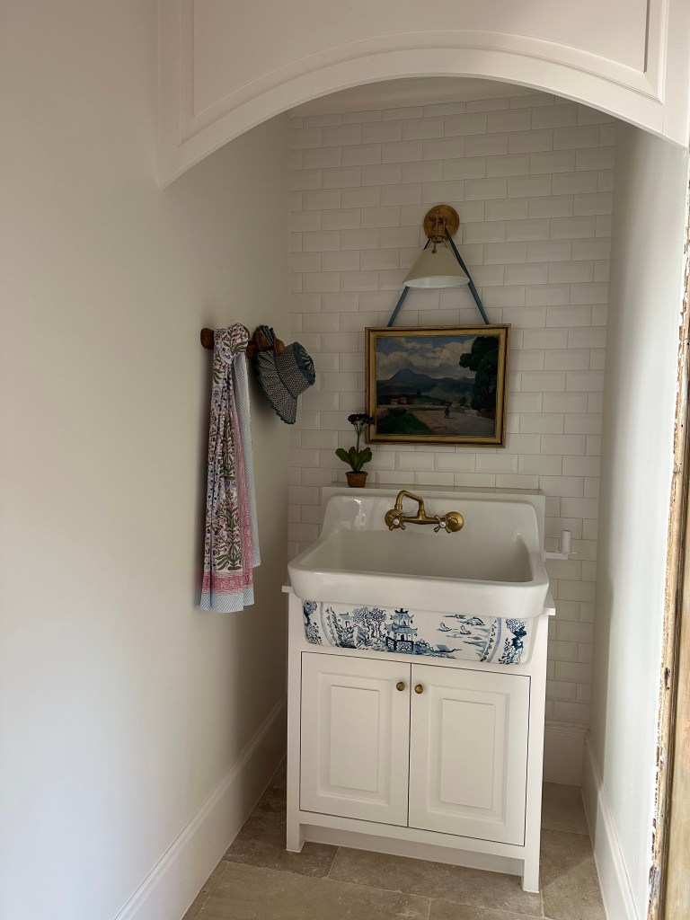 - The sink was hand-painted by a company in Louisiana in the chinoiserie style.
